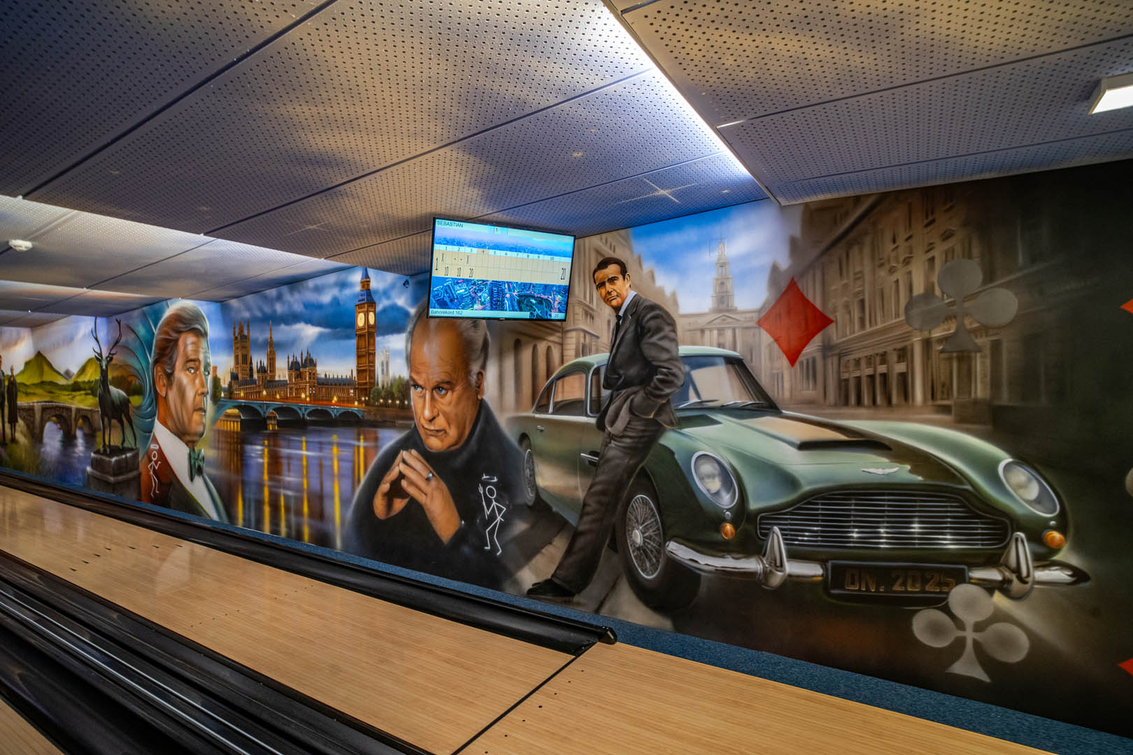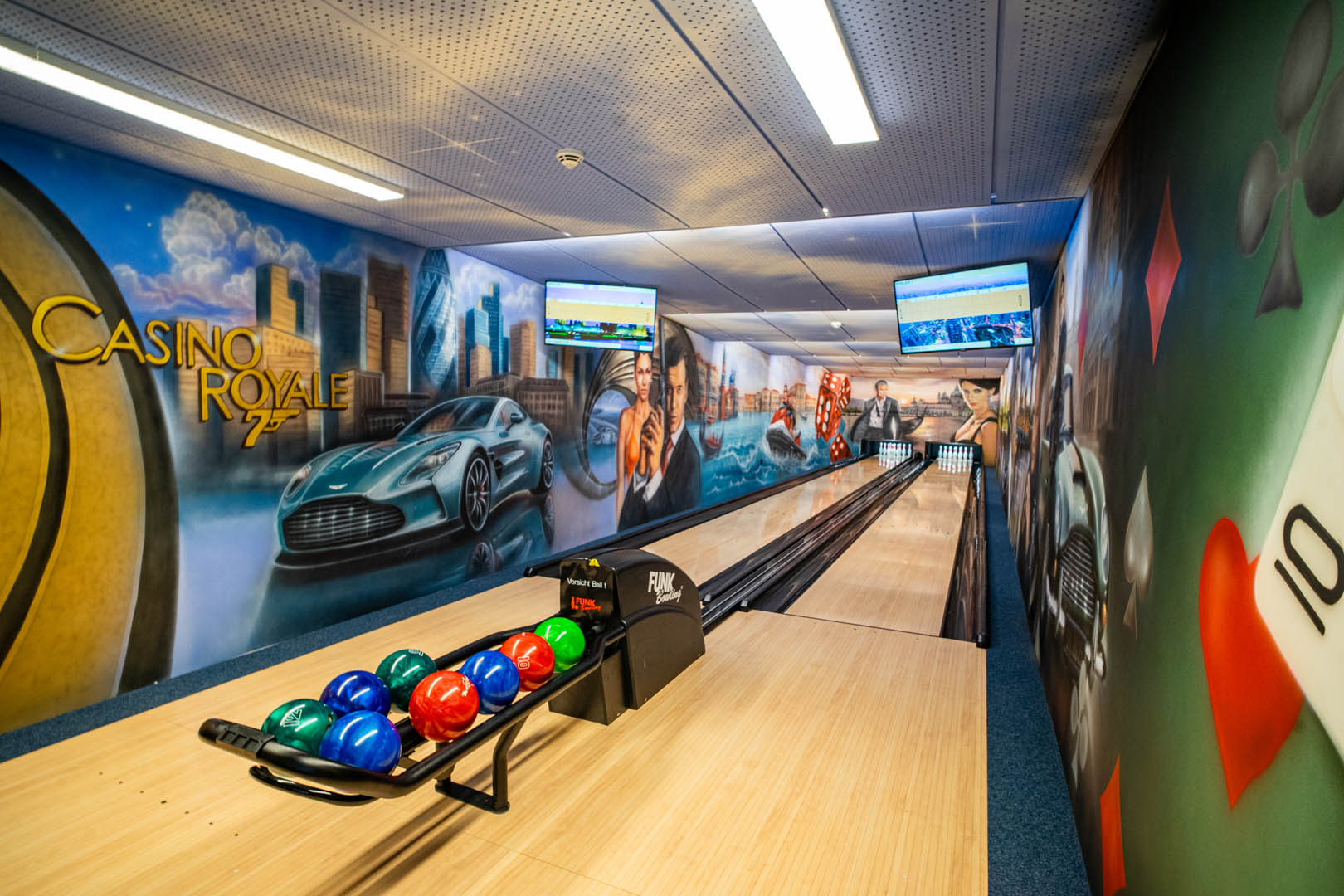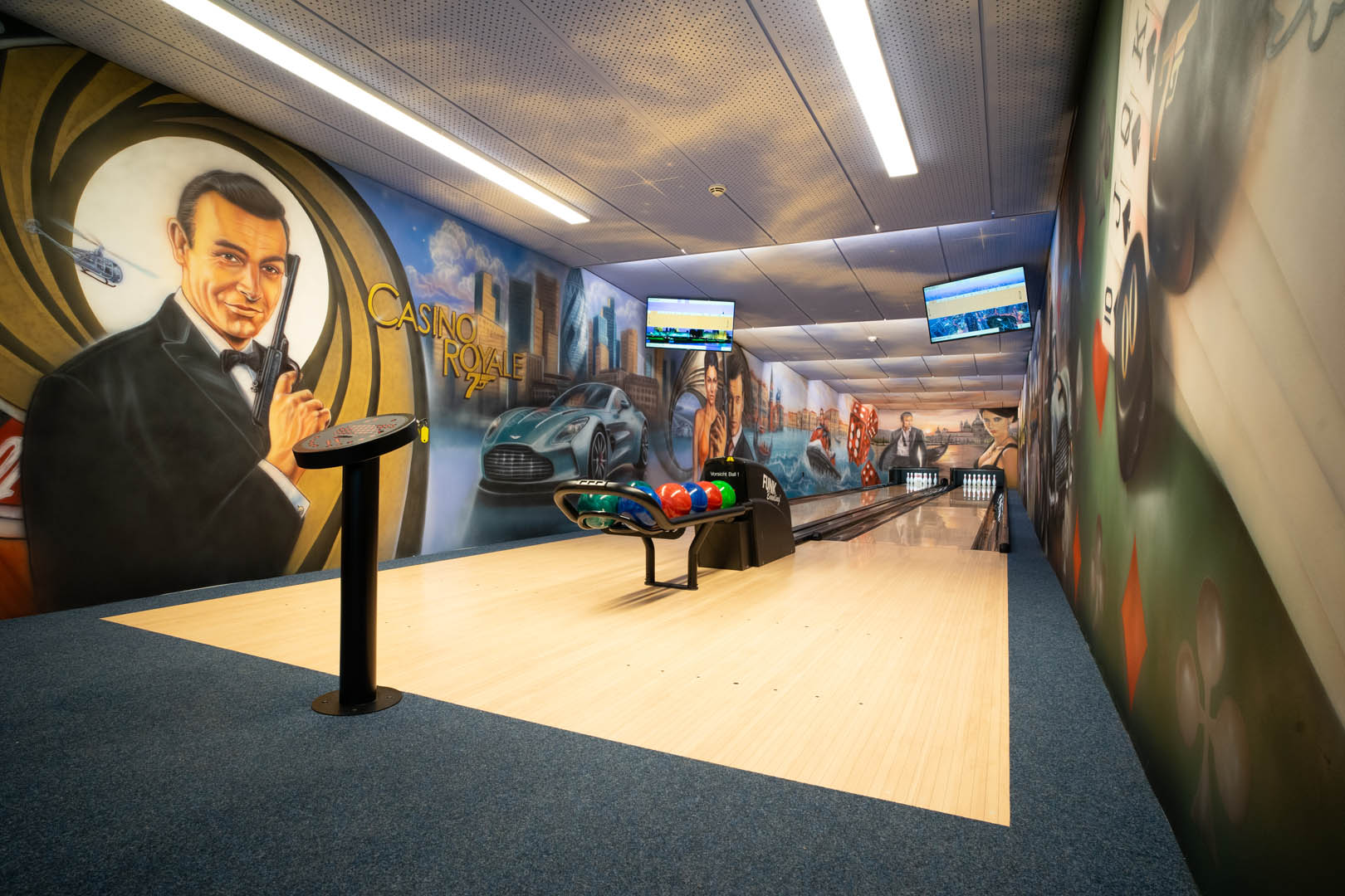 Ob für einen unterhaltsamen Abend mit Freunden, ein Teambuilding-Event mit Kollegen oder einfach nur, um den Alltag hinter sich zu lassen – unsere Bowlingbahn ist der ideale Ort für alle, die Spaß und Action suchen. Das elegante James Bond Design sorgt für ein besonderes Ambiente, das jeden Besuch zu einem Erlebnis macht.