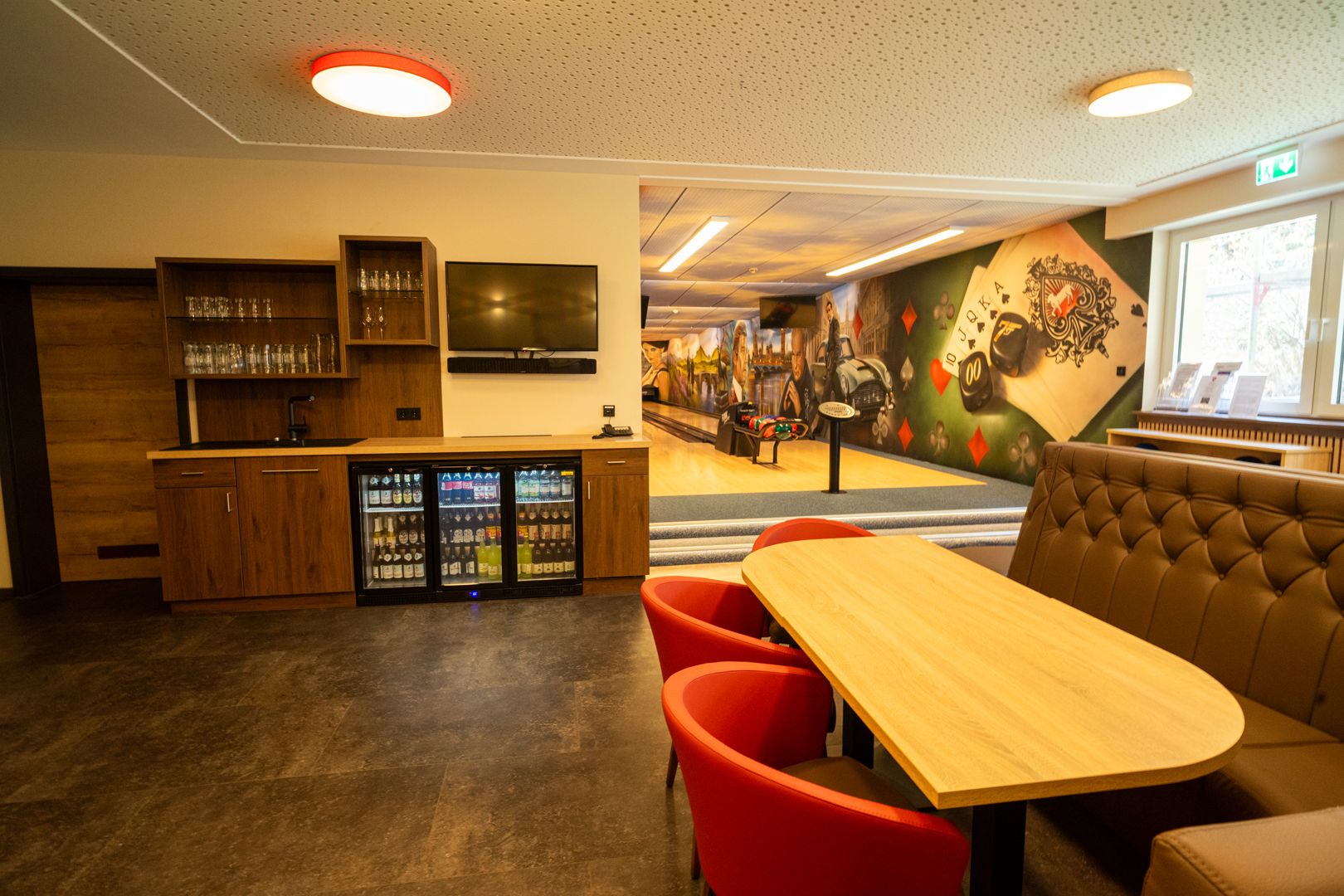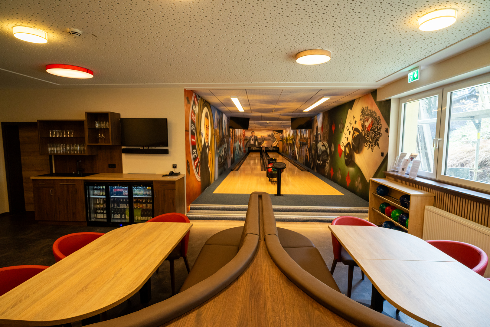 Seit Sommer 2025 erstrahlt unsere neu eröffnete Bowlingbahn im eleganten James Bond Design und bietet Platz für spannende Wettkämpfe auf zwei modernen Bahnen. Nach über 50 Jahren erfolgreichem Betrieb unserer traditionellen Kegelbahn freuen wir uns, unseren Gästen nun eine innovative und stilvolle Alternative zu präsentieren.